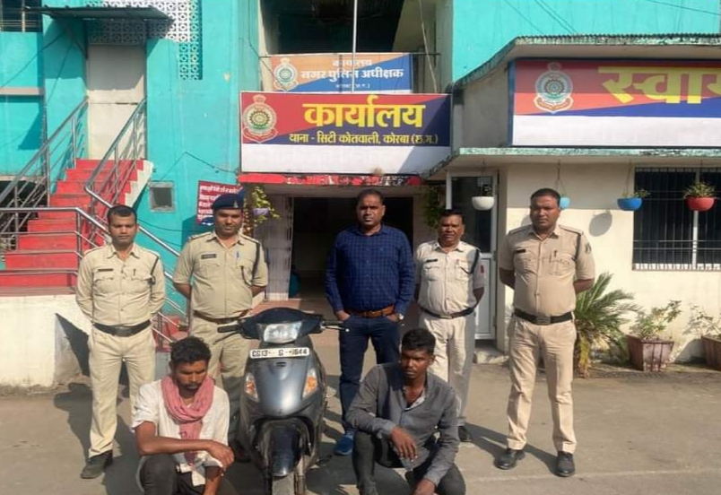 कोरबा : दिनांक 06-11-2021 को कोतवाली पुलिस को मुखबिर से सूचना प्राप्त हुई कि दो व्यक्ति कोरबा रेलवे स्टेशन के पास दुपहिया वाहन प्लेजर को बेचने के लिए ग्राहक की तलाश कर रहे हैं कि सूचना पर कोतवाली पुलिस टीम द्वारा तत्काल मौके पर पहुंचकर दोनों व्यक्तियों को राउंड अप करके पूछताछ किया गया आरोपियों द्वारा गाड़ी को रायगढ़ रेलवे स्टेशन से चोरी करना स्वीकार किए । आरोपियों की निशानदेही पर वाहन को बरामद कर लिया गया है, जिसके मालिक की पतासाजी की जा रही है। आरोपियों द्वारा अपना अपराध स्वीकार करने पर आरोपियों के विरुद्ध धारा 41(1-4) द.प्र. संहिता/379 भा.द.वि. के तहत कार्यवाही कर विधिवत गिरफ्तार कर न्यायिक रिमांड में भेजा गया है।