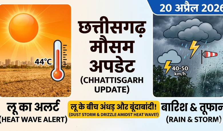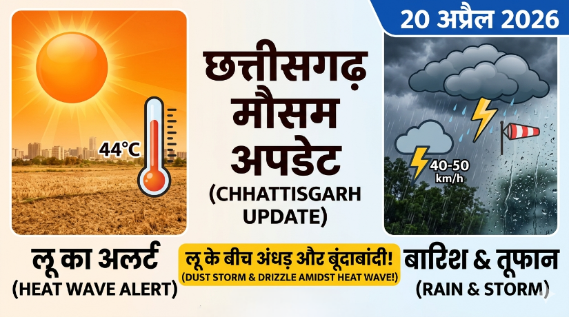 रायपुर: छत्तीसगढ़ में मौसम के दोहरे तेवर देखने को मिल रहे हैं। प्रदेश के कई हिस्सों में भीषण गर्मी और लू (Heat Wave) का सितम जारी है, वहीं दूसरी ओर मौसम विभाग ने गरज-चमक के साथ हल्की बारिश और तेज हवाओं की चेतावनी दी है। उत्तर प्रदेश से लेकर ओडिशा तक सक्रिय एक ट्रफ लाइन के प्रभाव से राज्य के मौसम में यह उतार-चढ़ाव बना हुआ है।