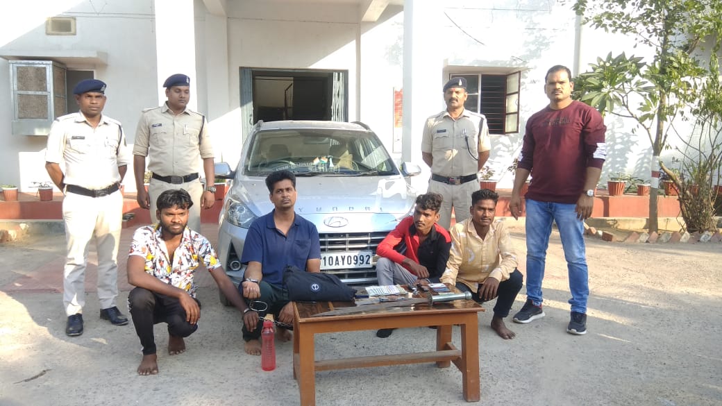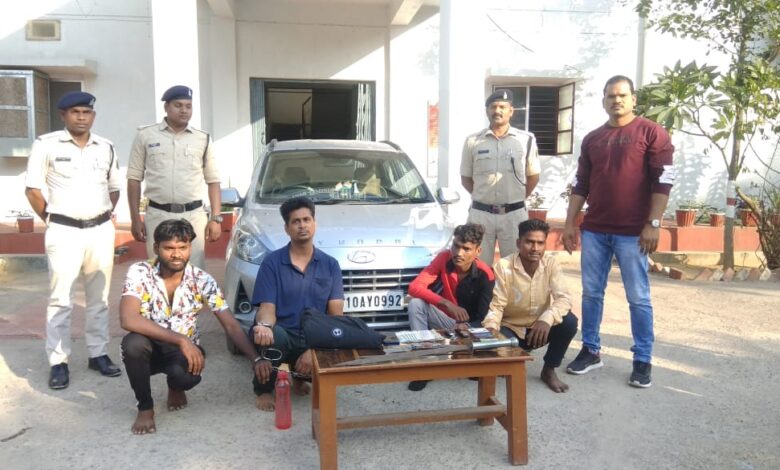 बिलासपुर : दिनांक 04.11.2021 की रात करीबन 02:00 बजे बिलासपुर से अपने ग्राम उमरमरा थाना-कोटा जा रहे, मुकेश राज , रूपेश कुमार गोंड को भैंसाझार के पास वाहन कार क्र. CG 10 AY 0992 सवार 04 अज्ञात युवकों द्वारा तलवार/चाकू दिखलाकर मारपीट कर नगदी रकम 8000रू. मोबाईल तथा अन्य सामान लूट लिये थे, उक्त मामले में प्रार्थी मुकेश राज की रिपोर्ट पर थाना रतनपुर में अपराध क्र. 551/21 धारा- 394,506,34 भादवि/25 आर्स एक्ट का अपराध पंजीबद्ध कर विवेचना में लिया गया था। दिनांक 04.11. 2021 को सकरी थाना क्षेत्र में भी कार सवार अज्ञात युवकों द्वारा पिकअप वाहन को रोक कर नगदी रकम एवं मोबाईल की लूटपाट की गई थी, लूटपाट की घटनाओं को पुलिस अधीक्षक महोदय श्री दीपक झा द्वारा गंभीरता से लेते हुए आरोपियों की पतासाजी हेतु निर्देश दिये गये थे, जो अतिरिक्त पुलिस अधीक्षक ग्रामीण श्री रोहित झा एवं अनुविभागीय पुलिस अधिकारी कोटा श्री आशीष अरोरा की निर्देशन में थाना प्रभारी रतनपुर- हरविंदर सिंह द्वारा टीम गठित कर त्वरित पतासाजी कर आरोपियों को दिनांक 06.11.2021 को गिरफतार कर आरोपियों से थाना रतनपुर एवं थाना सकरी के अपराध में प्रयुक्त कार, 02 नग धारदार तलवार