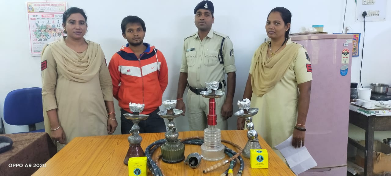 रायपुर – पुलिस अधीक्षक महोदय श्री प्रशांत अग्रवाल द्वारा शासन के मंशानुसार रायपुर पुलिस के समस्त पुलिस राजपत्रित अधिकारियों एवं थाना प्रभारियों को नशे का काला कारोबार करने वाले कारोबारियों की पतासाजी करने के साथ ही हुक्का पिलाने वालों के संबंध में कार्यवाही करने एवं इस पर प्रभावी रूप से अंकुश लगाने आवश्यक दिशा निर्देश दिये गये है। जिस पर समस्त पुलिस राजपत्रित अधिकारियों एवं थाना प्रभारियों द्वारा मुखबीर लगाकर, पेट्रोलिंग व सूचना संकलन कर नशे का कारोबार करने वाले कारोबारियों एवं हुक्का पिलाने वालों के संबंध में सूचना एकत्रित की जा रही है। इसी क्रम में दिनांक 07.11.2021 को सूचना प्राप्त हुई कि थाना माना क्षेत्रांतर्गत व्ही.आई.पी. रोड स्थित हुक्की डुक्की रेस्टोरेंट के संचालक द्वारा अपने रेस्टोरेंट में हुक्का पिलाया जा रहा है। जिस पर वरिष्ठ अधिकारियों के निर्देशन में थाना माना पुलिस की टीम द्वारा उक्त रेस्टोरेंट में जाकर रेड कार्यवाही किया गया। रेड कार्यवाही के दौरान संचालक द्वारा लोगों को हुक्का पिलाने की तैयारी करते पाये जाने पर आरोपी हुक्की डुक्की रेस्टोरेंट के संचालक पूर्णा आडबंग उर्फ मोन्टू को पकड़कर उसके कब्जे से 04 नग हुक्का पार्ट मय पाईप चिलम जप्त कर आरोपी के विरूद्ध थाना माना में धारा 4/21, 6/24 सिगरेट व तम्बाकू उत्पाद विमापन का प्रतिषेध व व्यापार तथा वाणिज्य उत्पाद का वितरण विनियमन कोटपा अधिनियम 2003 के तहत् कार्यवाही करने के साथ ही आरोपी के विरूद्ध पृथक से प्रतिबंधात्मक धाराओं के तहत् भी कार्यवाही किया गया।