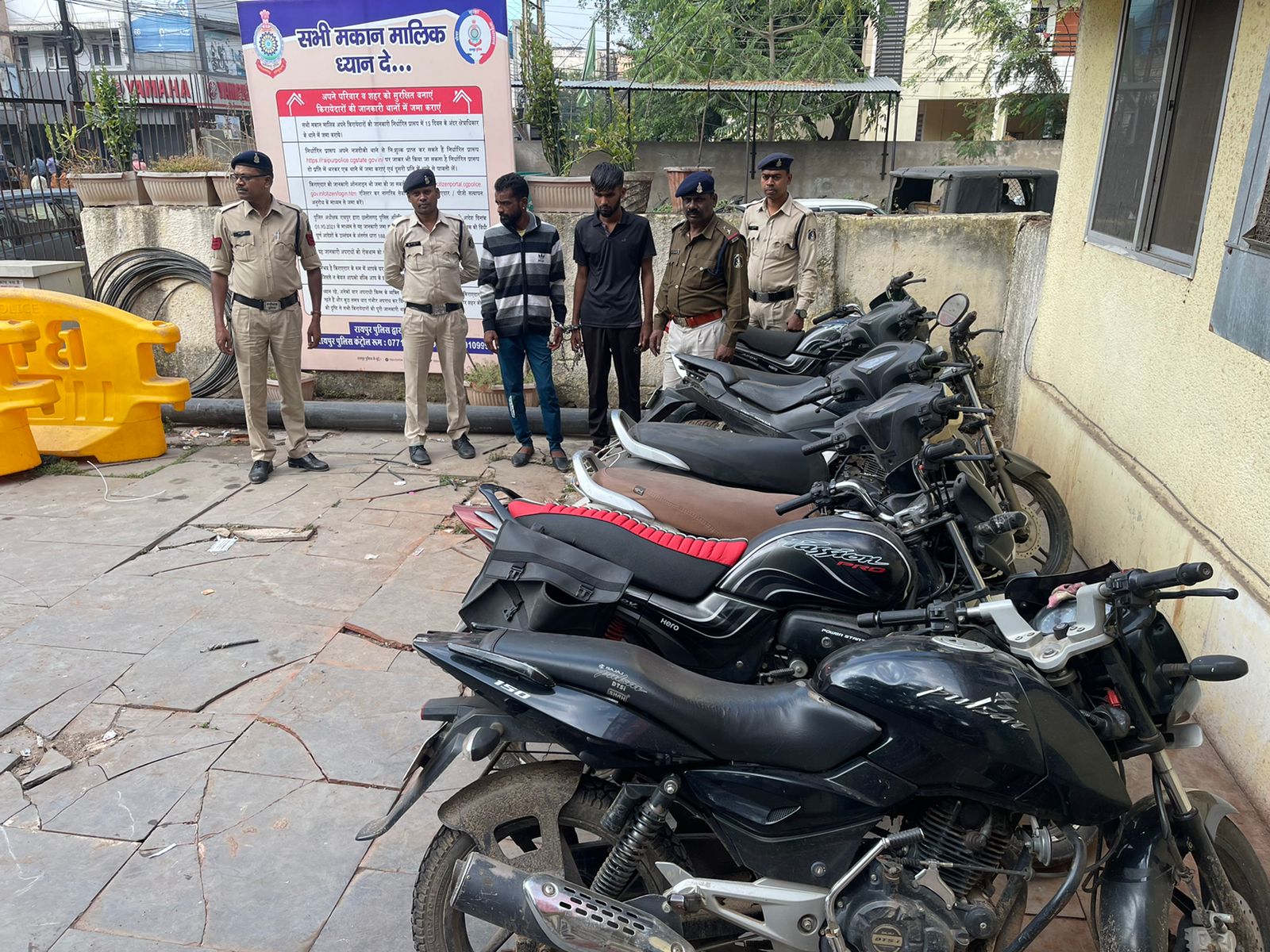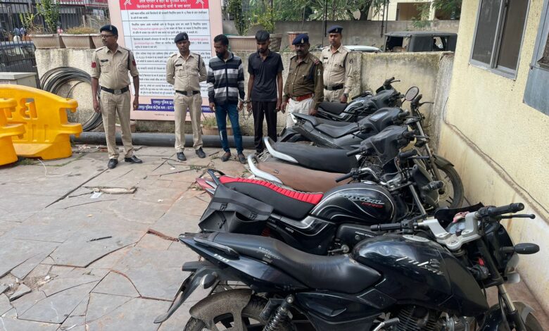 द्वारा मुखबीर लगाकर, पेट्रोलिंग व सूचना संकलन कर इस संबंध में सूचना एकत्रित करने के साथ ही समस्त थाना प्रभारियों द्वारा अपने अपने थाना क्षेत्र में वाहन चोरी के आरोपियों को ट्रैप करने हेतु विशेष टीम का गठन किया गया है। इसी तारतम्य में सायबर सेल की टीम को सूचना प्राप्त हुई कि थाना मौदहापारा क्षेत्रांतर्गत मरही माता चौक लक्ष्मी मेडिकल स्टोर पास दो व्यक्ति सस्ते दाम में मोटर सायकल बिक्री करने हेतु ग्राहक की तलाश कर रहे है। जिस पर अतिरिक्त पुलिस अधीक्षक शहर श्री तारकेश्वर पटेल एवं अतिरिक्त पुलिस अधीक्षक अपराध श्री अभिषेक माहेश्वरी के निर्देशन में प्रभारी सायबर सेल एवं थाना प्रभारी मौदहापारा के नेतृत्व में सायबर सेल एवं थाना मौदहापारा की संयुक्त टीम द्वारा उक्त स्थान पर जाकर मुखबीर द्वारा बताये हुलिये के व्यक्तियों एवं वाहन को चिन्हांकित कर व्यक्तियों को पकड़ा गया। पूछताछ में व्यक्तियों ने अपना नाम गुलशन कुमार वर्मा एवं दिनेश साहू होना बताया। टीम द्वारा व्यक्तियों से वाहन के कागजात के संबंध में पूछताछ करने पर उनके द्वारा गोल मोल जवाब देकर लगातार टीम को गुमराह करने का प्रयास किया जा रहा था। जिस पर टीम के सदस्यों द्वारा कड़ाई से पूछताछ करने पर दोनों के द्वारा मोटर सायकल को थाना मौदहापारा क्षेत्र के समवेत शिखर काम्पलेक्स के पार्किंग से चोरी करना बताया गया। टीम द्वारा दोनों आरोपियों से चोरी की अन्य वाहनों के संबंध में कड़ाई से पूछताछ करने पर आरोपियों द्वारा रायपुर शहर के अलग अलग थाना क्षेत्रों के विभिन्न स्थानों से अन्य 06 नग दोपहिया वाहनों को चोरी करना बताया गया। जिस पर टीम द्वारा आरोपी गुलशन कुमार वर्मा एवं दिनेश साहू की निशानदेही पर उनके कब्जे से कुल 07 नग दोपहिया वाहन जुमला कीमती लगभग 3,00,000/- रूपये जप्त किया गया। आरोपियों से जप्त अन्य 06 नग दोपहिया वाहनों पर पृथक से धारा 41(1+4) जा.फौ./379 भादवि. का अपराध पंजीबद्ध कर आरोपियों को गिरफ्तार किया जाकर उनके विरूद्ध अग्रिम कार्यवाही किया गया।